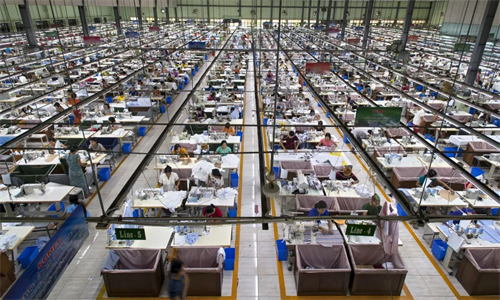 Рабочие заняты в мастерской текстильной и легкой промышленности SUMEC. [Фото/SUMEC]